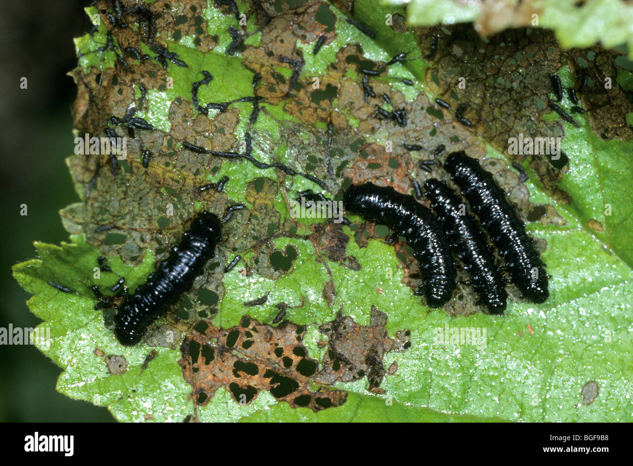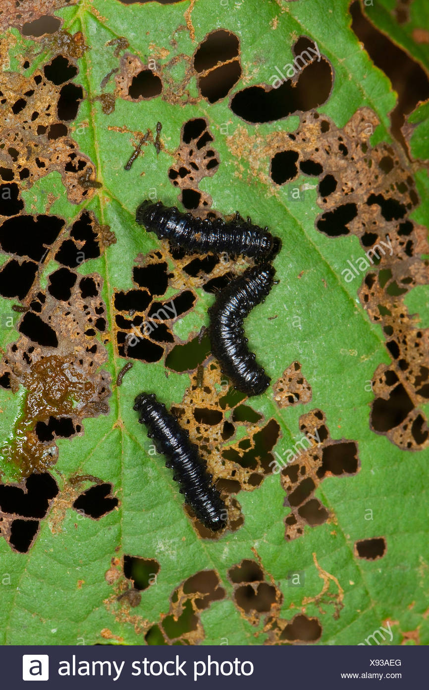 Alder Leaf Beetle Agelastica Alni Larvae Feeding On Alder Leaves Germany Stock Photo Alamy