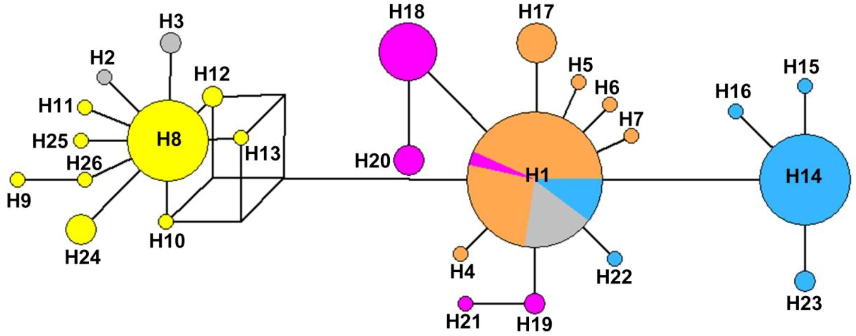 Tcs Haplotype Network Generated Using The Popart Program From The Download Scientific Diagram