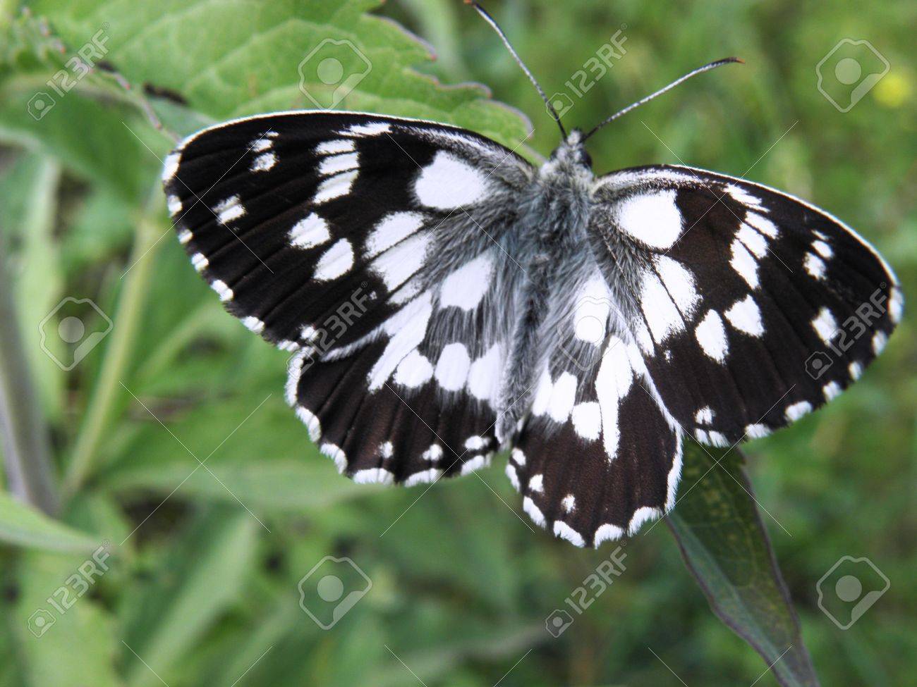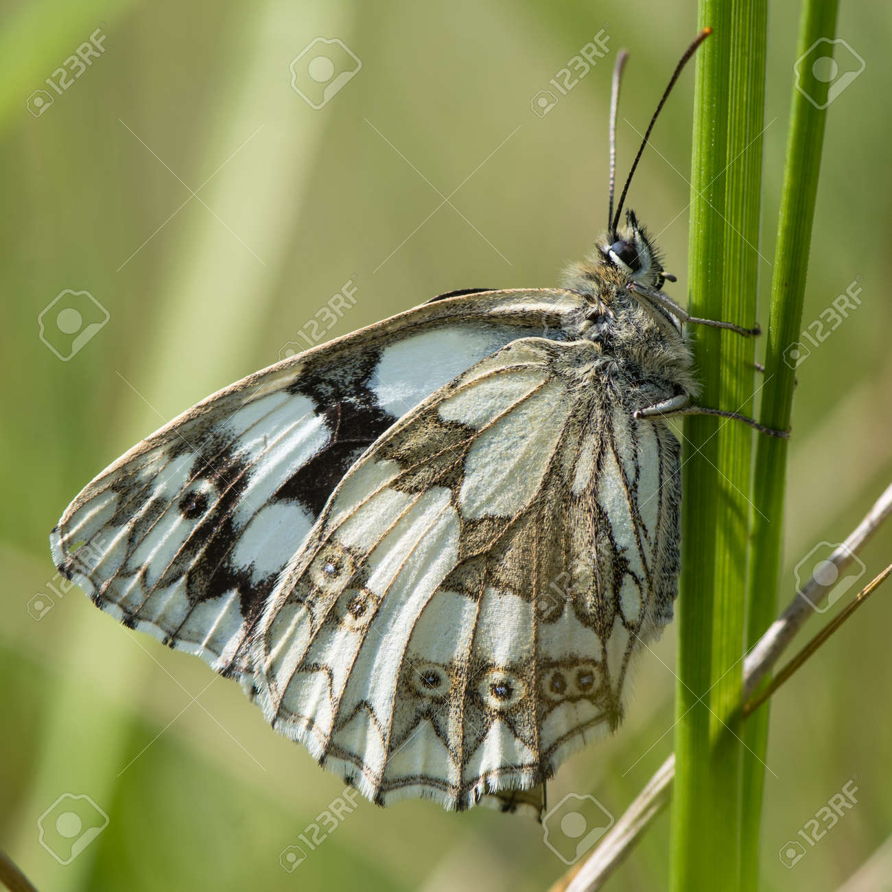 Marbled White Butterfly Melanargia Galathea On Grass Underside Stock Photo Picture And Royalty Free Image Image 80829620
