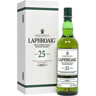 Go to shop The Really Good Whisky Company. Laphroaig 25 Year Old. This full-bodied variant is the foundation of all Laphroaig expressions and comes with a long finish. Laphroaig 25 years single malt 2020