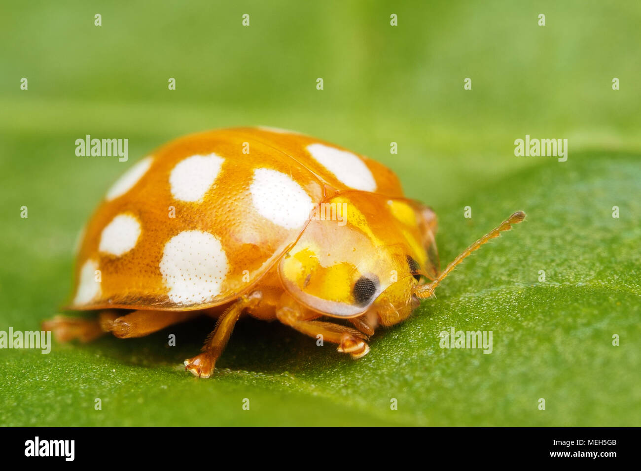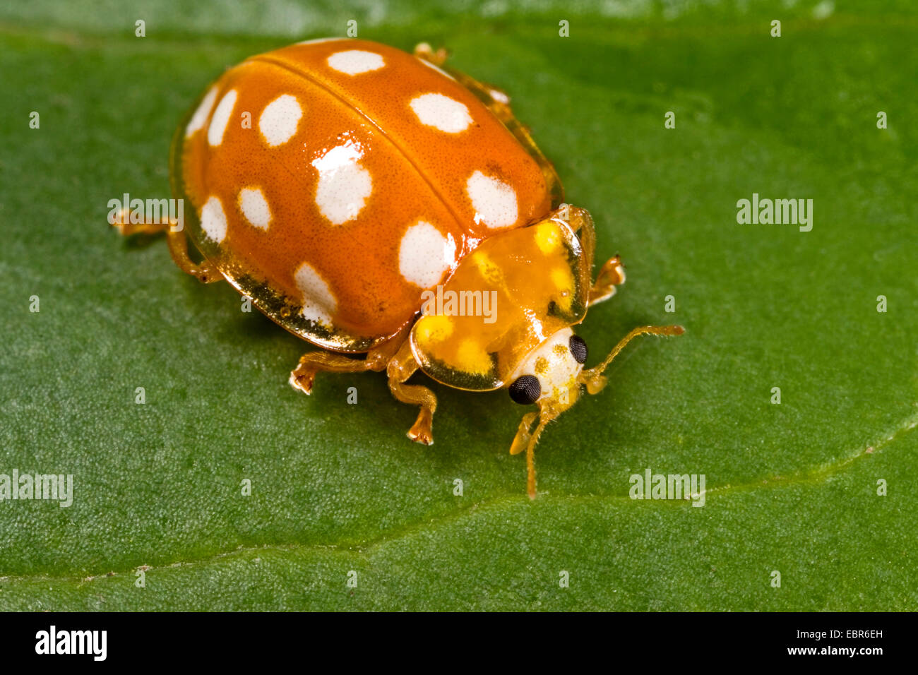 Orange Ladybird Halyzia Sedecimguttata Resting On A Dock Leaf Tipperary Ireland Stock Photo Alamy